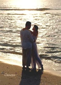 They took off their shoes and walked in silence for awhile as the sun set, Kathryn's sheer dress fluttering in the gentle breeze as they stopped every so often to kiss and look out over the ocean.